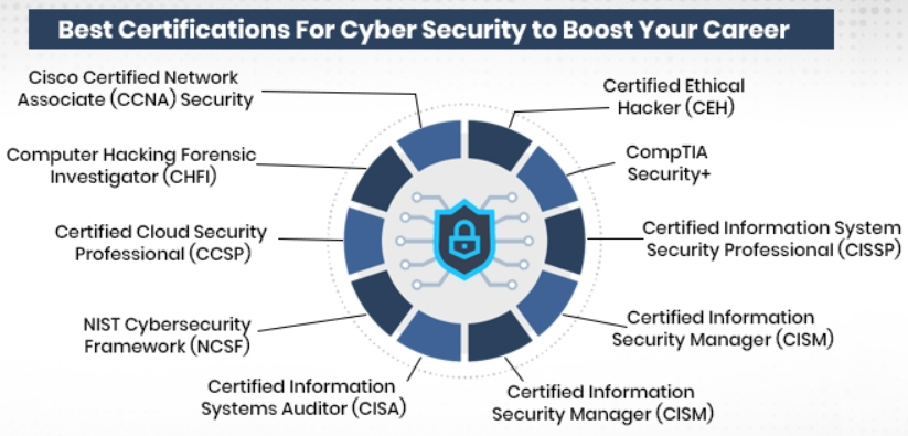 - Examples: CompTIA Security+, CompTIA Network+, Certified Ethical Hacker (CEH).